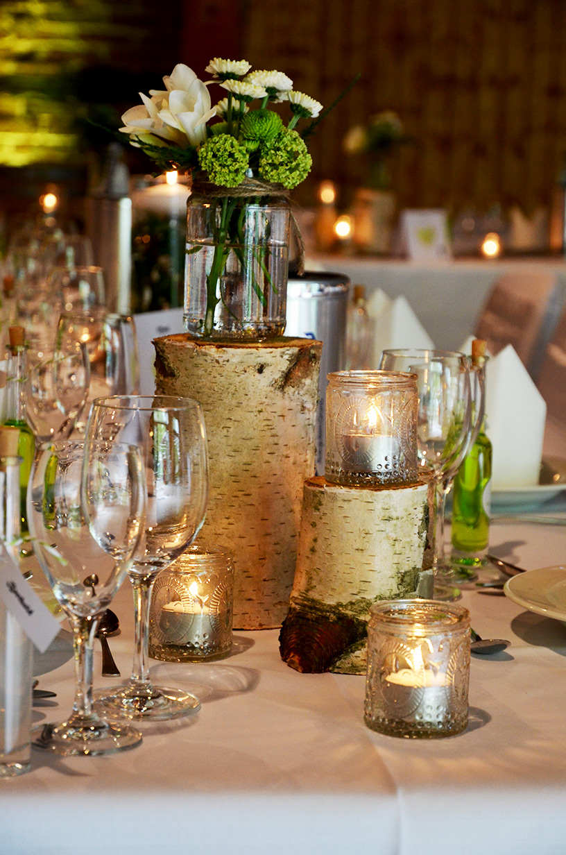 Dieses wunderbare Baumstamm-Set aus Birke in drei verschiedenen Höhen lässt sich wunderbar mit Blumen und Kerzen kombinieren.