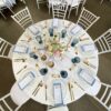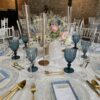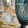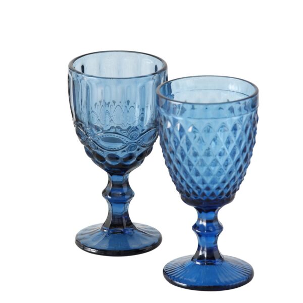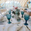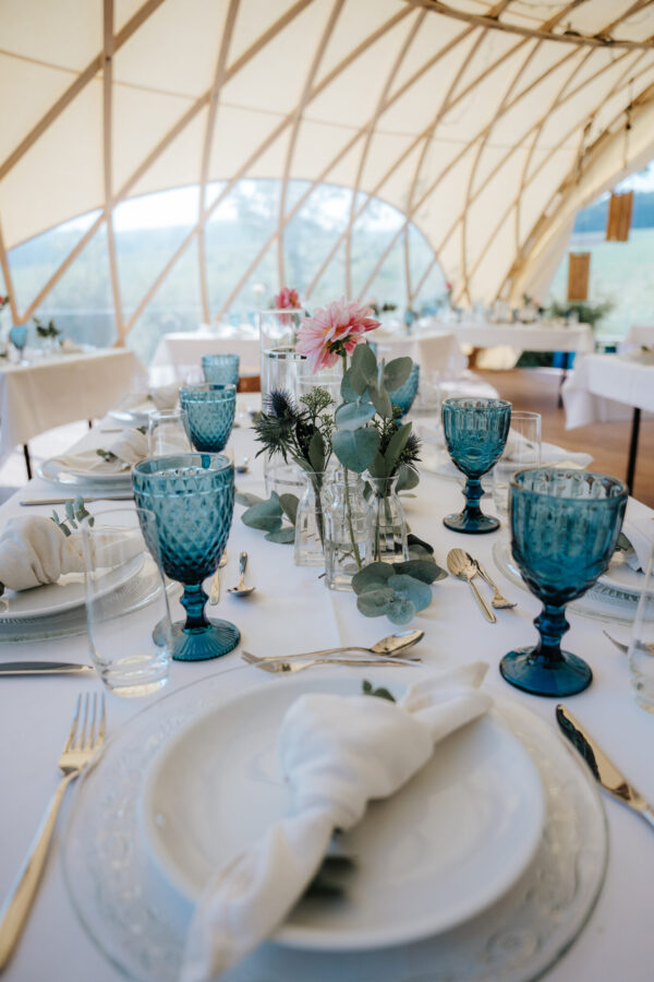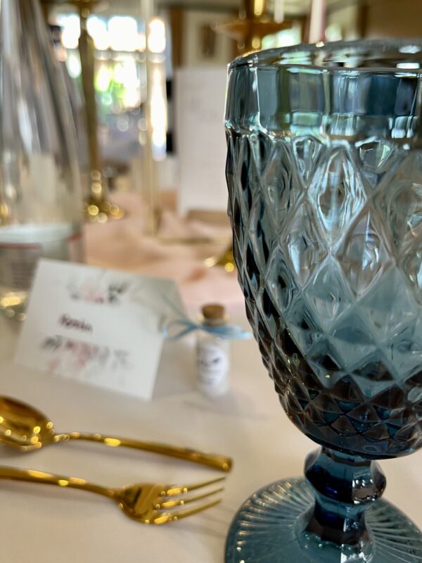 Trinkglas in blau: als Wein- oder Wasserglas verwendbar. Schöner Farbakzent auf den Tischen.