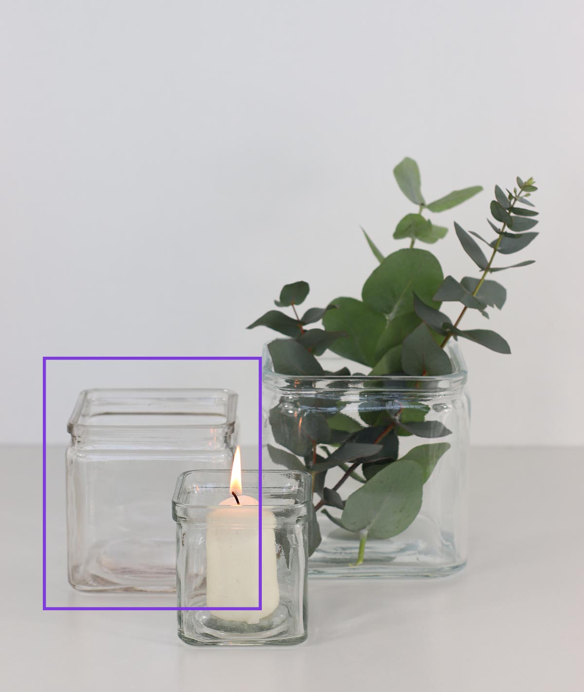 Der mittlere Glaswürfel kommt am Besten in Kombination mit den anderen beiden Größen (klein und groß).