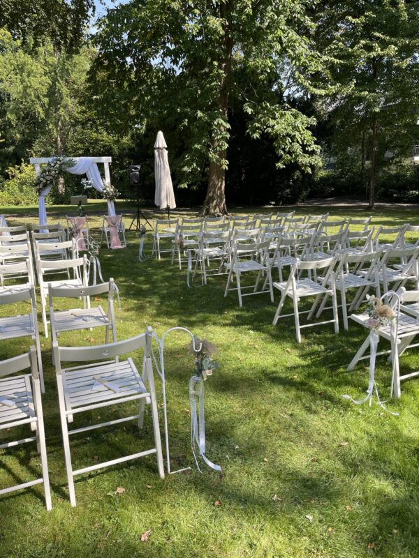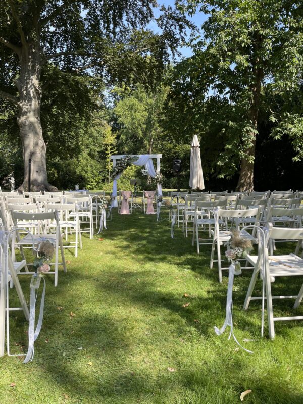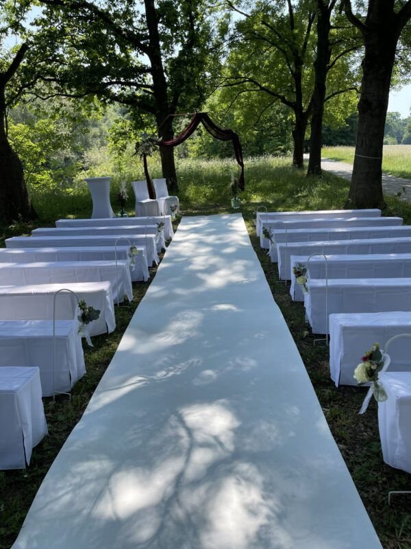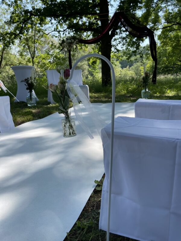 Ergänzt diese mit Hängevasen und schon habt ihr eine wundervolle Gangdeko bei z.B. einer freien Trauung.