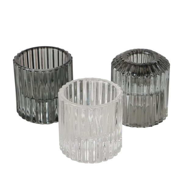 Teelichthalter in drei verschiedenen Farben, hellgrün, grün, klar