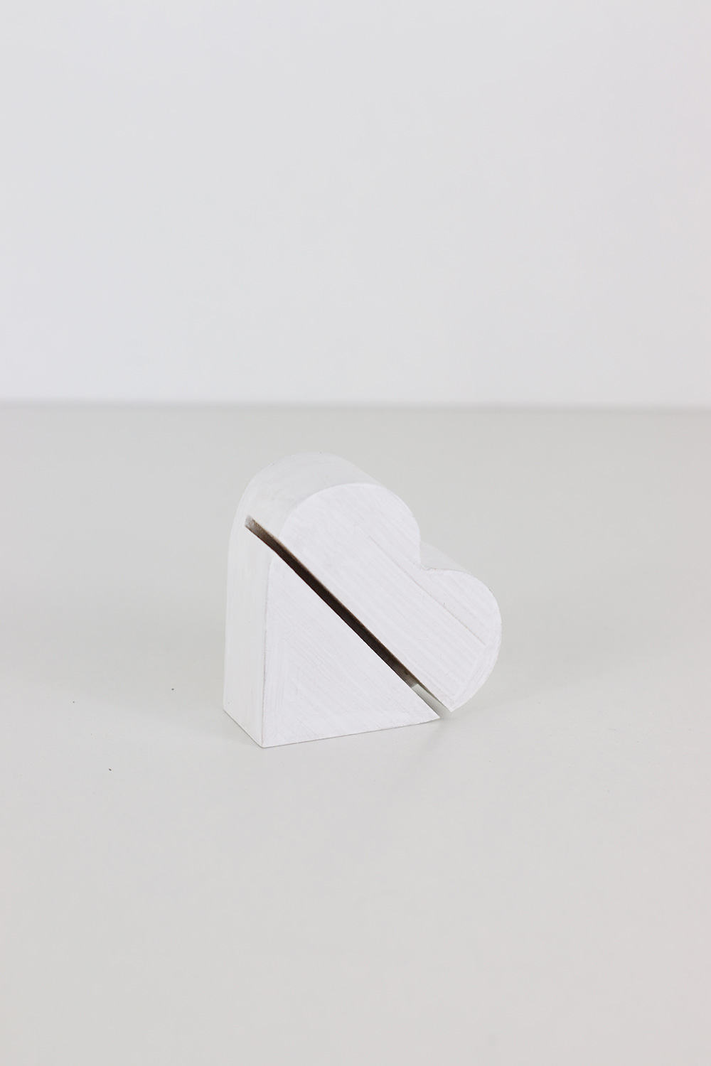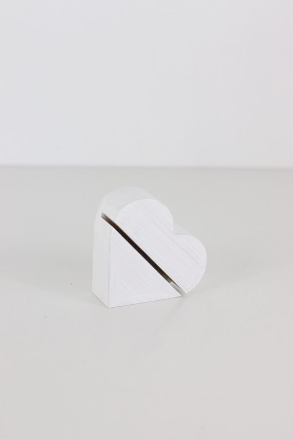 Diese weißen schlichten Ständer in Herzform aus Holz können sowohl als Menükarten- oder Tischnummernhalter verwendet werden.