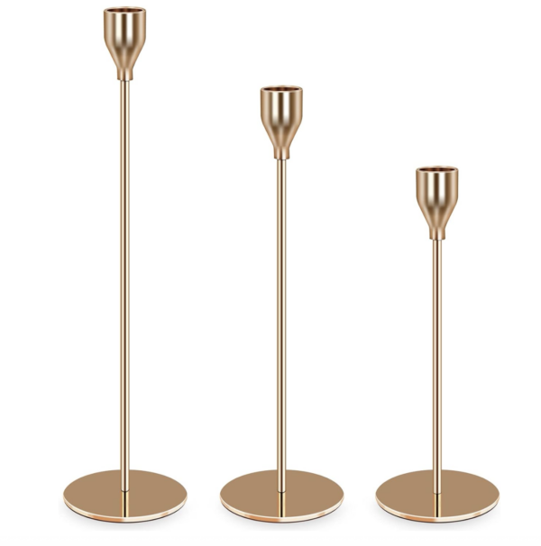 Wunderschön und filigran komplettieren sie eure Tischdeko und zaubern ganz nebenbei ein super schönes Ambiente. In drei verschiedenen Höhen im Set sind sie auf Events im trendigen gold-style nicht mehr wegzudenken.