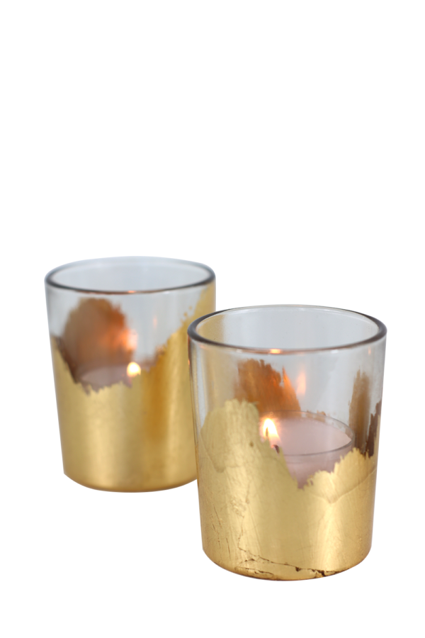 Mit Blattgold veredelte, handgefertigte Teelichthalter