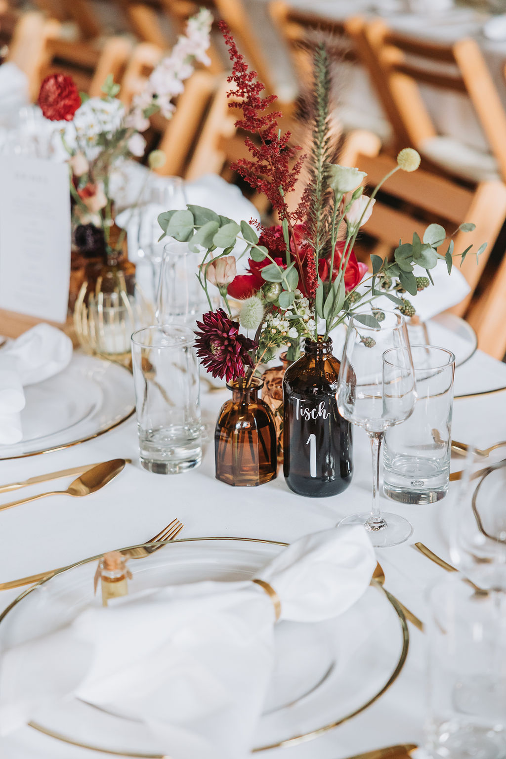 Schöne Vase in braun. Kombiniert mit unseren anderen braunen Vasen – als Apothekervasen-Set – und schönen Blumen ergibt es ein super schönes Bild auf den Tischen.