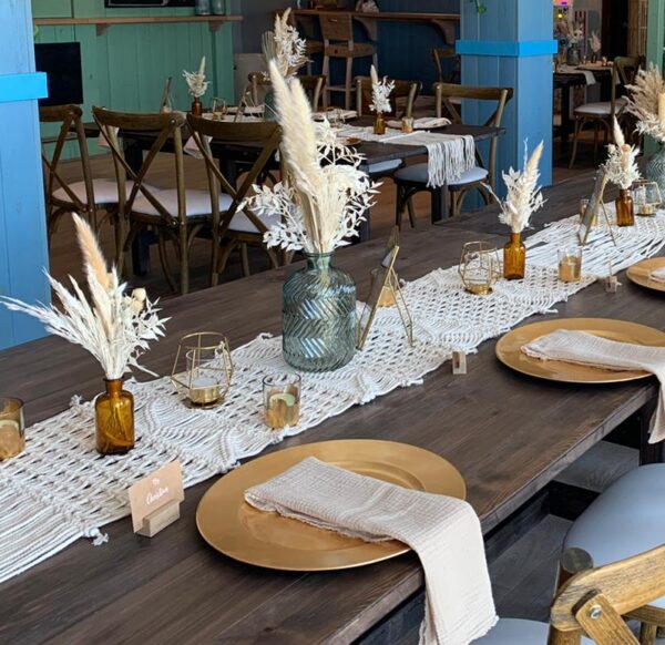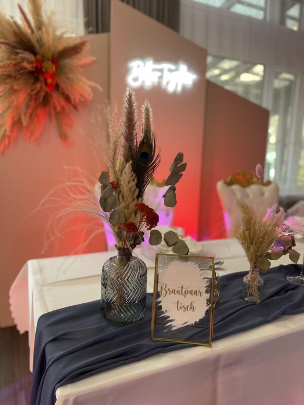 Diese hübschen Vasen in grau-blau sind ein toller Hingucker auf den Tischen und passen zu fast jeder Dekoration.