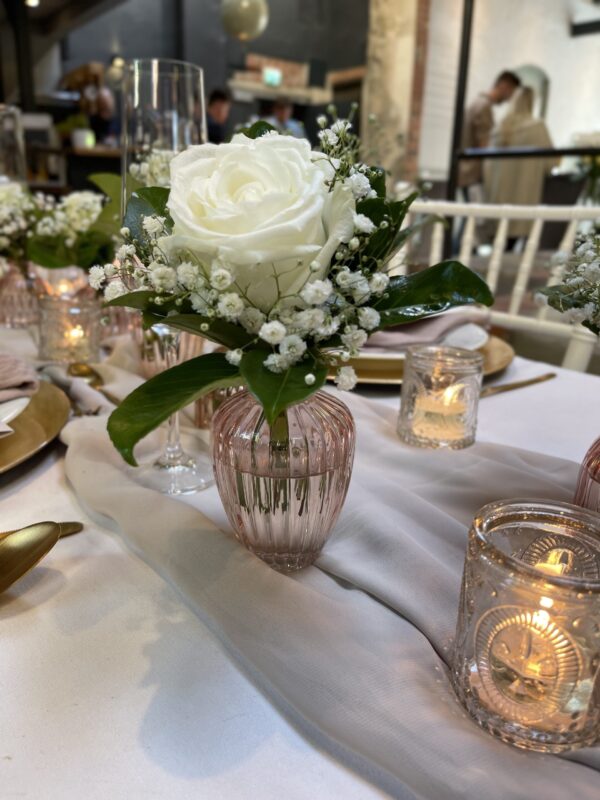 Hübsche Vase in rosa. Kombinierbar mit der bauchigen „Schwester“.