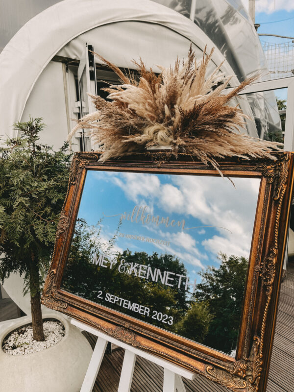 Willkommensschild Spiegel Willkommens-Schild Spiegel individuell beschriftbar Category: Außendekoration45,00 € Quantity In den Mietkorb SKU: 703 Was für eine schöne Geste, seine Gäste „WILLKOMMEN“ zu heißen! Wunderschöner, antiker individuell gestalteter Spiegel in goldfarben. Deko Tipp: Sieht noch schöner aus, wenn ihr es mit Blumen aus dem Blumenkonzept schmückt! Maße: 84 x 64 cm (Höhe x Breite) Versandinformationen: Nur Abholung, dieser Artikel kann nicht versendet werden. Can we interest you in… Something similar Willkommensschild HolzIn den Mietkorb 55,00 € Willkommensschild Acrylglas geweißtIn den Mietkorb 55,00 € Hochzeits Hüpfburg weißIn den Mietkorb 350,00 €