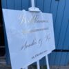 Schönes und individuell gestaltetes Willkommensschild auf weißer Acrylglasplatte.